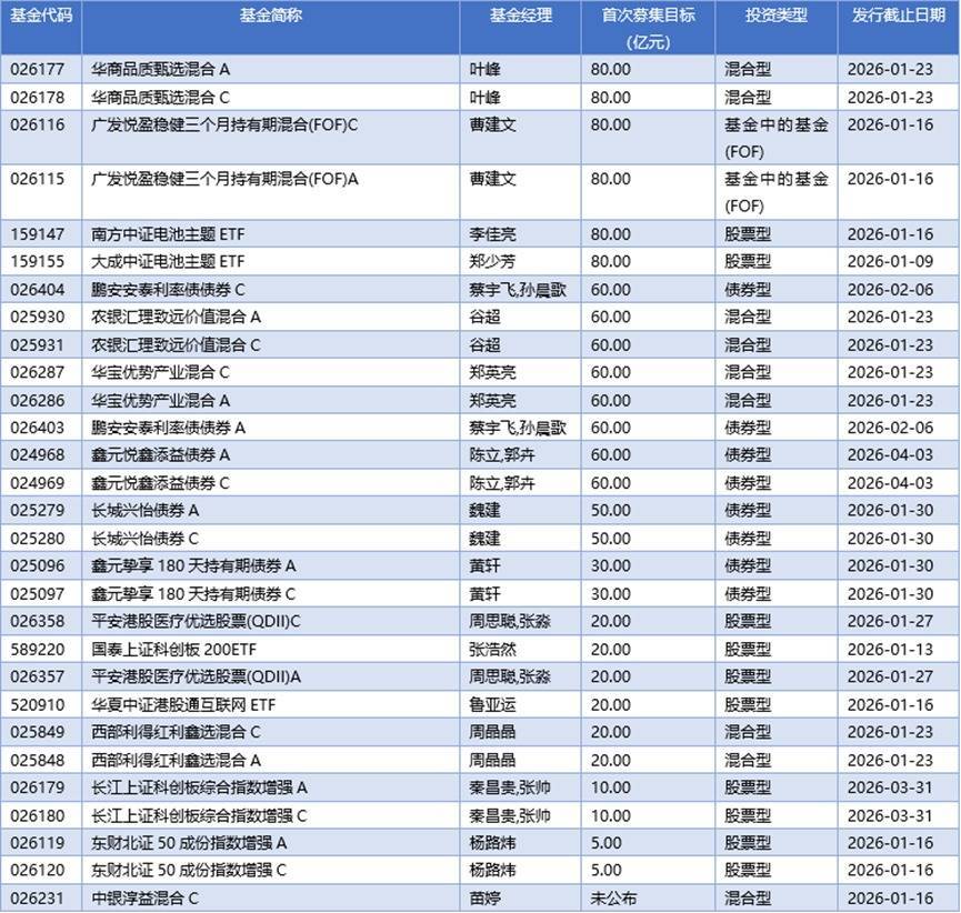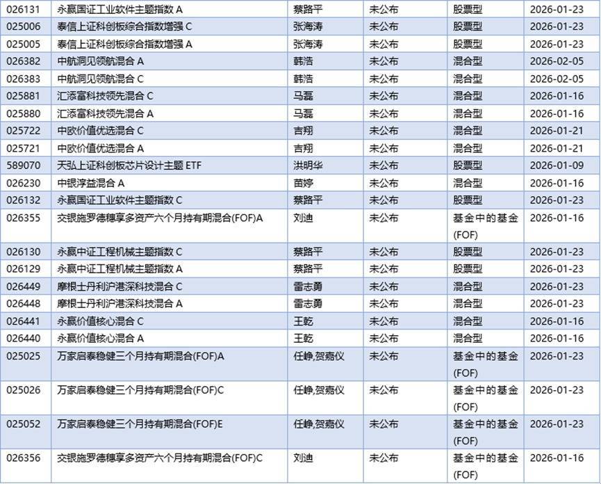 三、01月05日新发基金一览(不包含传统封闭式基金)